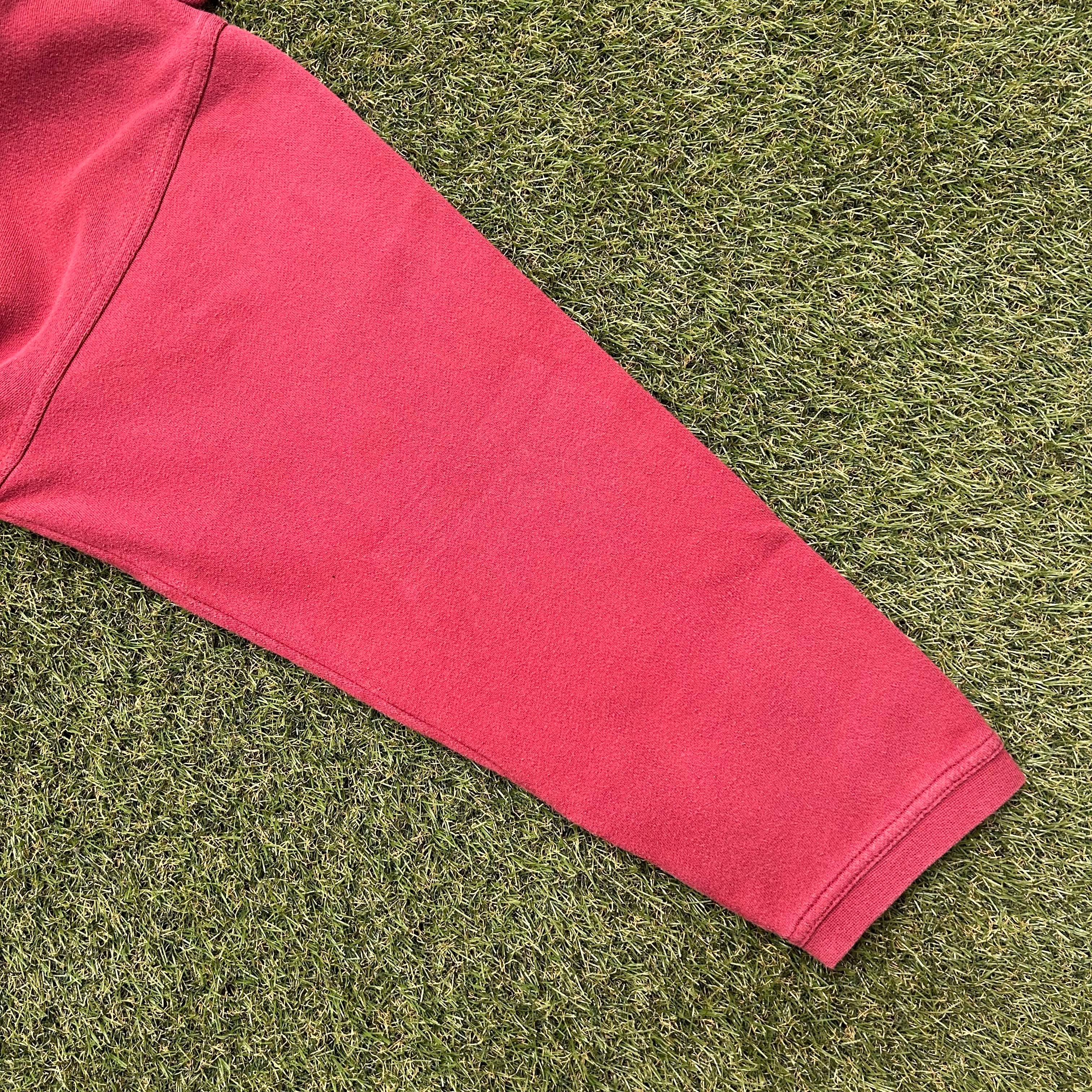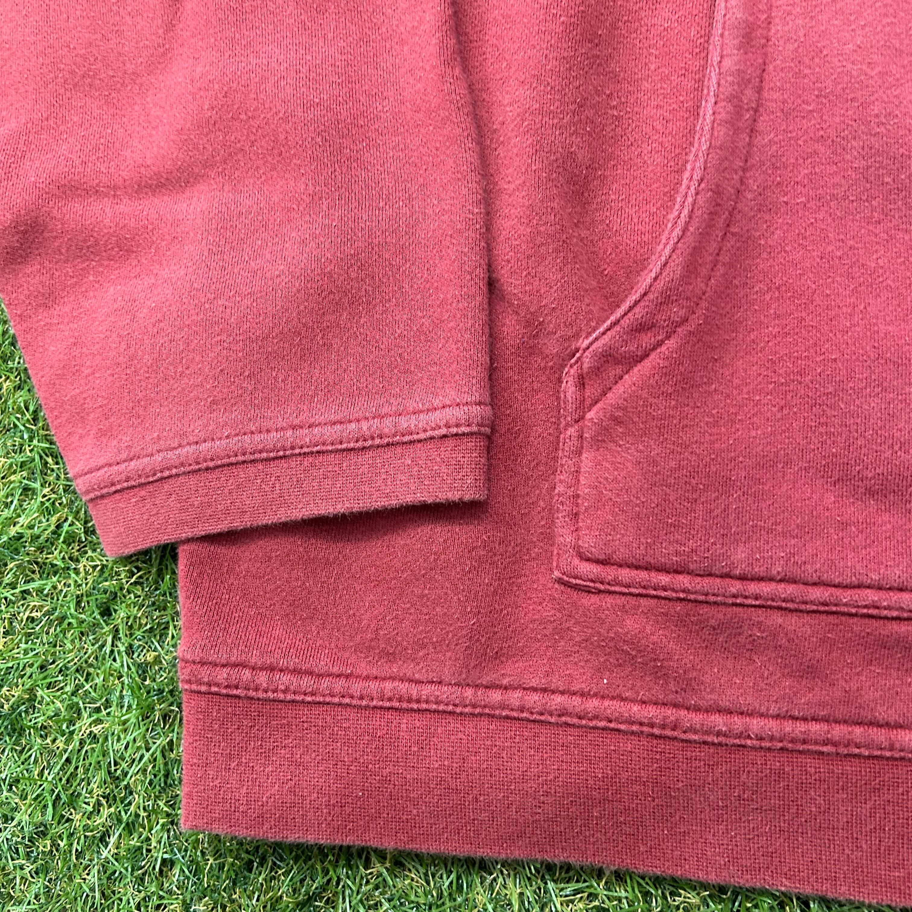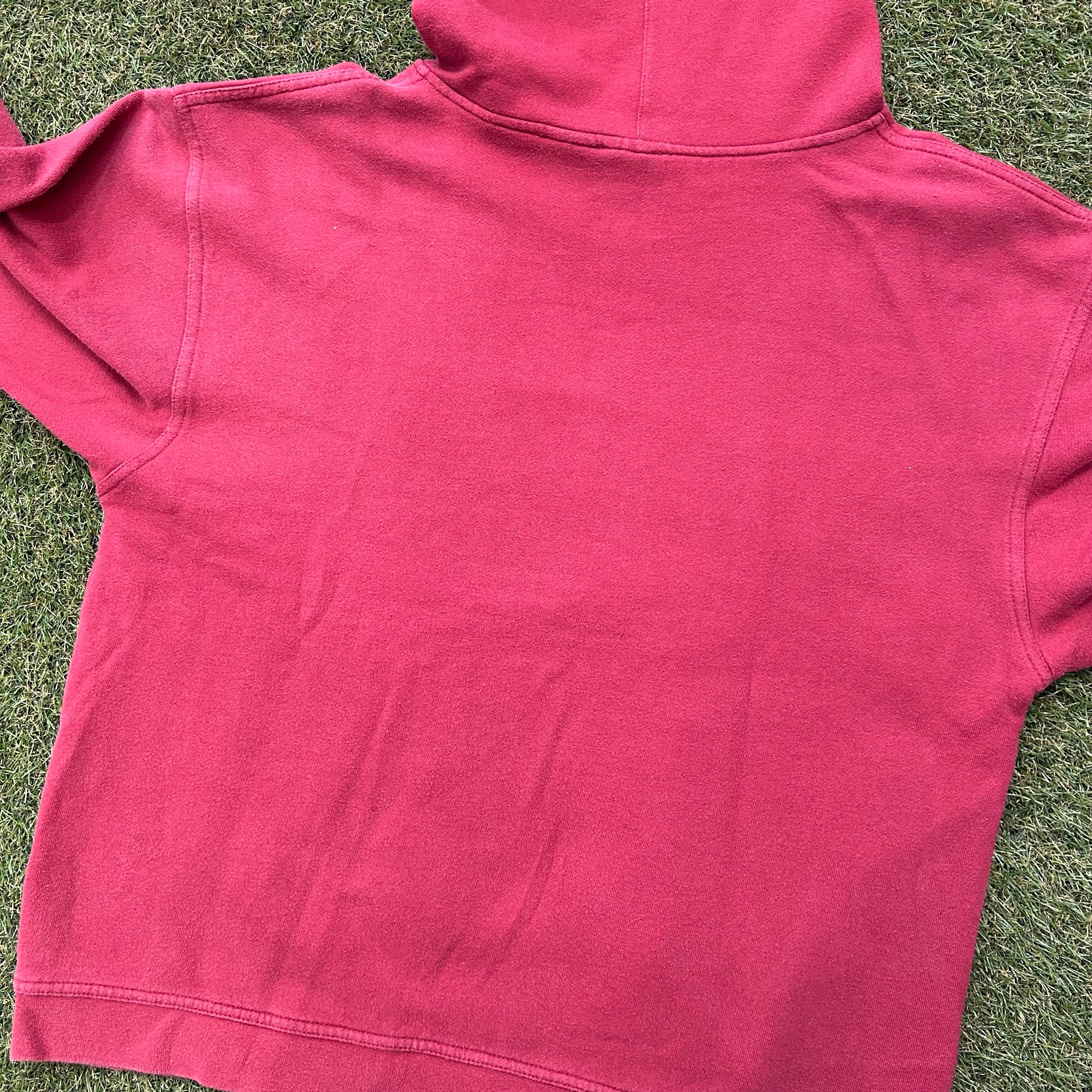 チームカラーのエンジ×イエローを採用したパーカー。